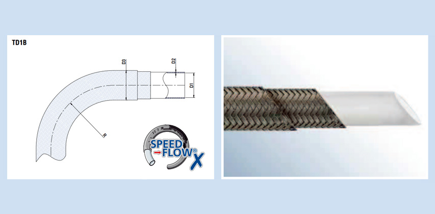 Speed Flow is manufactured from virgin PTFE resin with AISI 304 stainless steel, high tensile braid. Bigger bore than Speed Flow to assemble with hydraulic tail fittings.